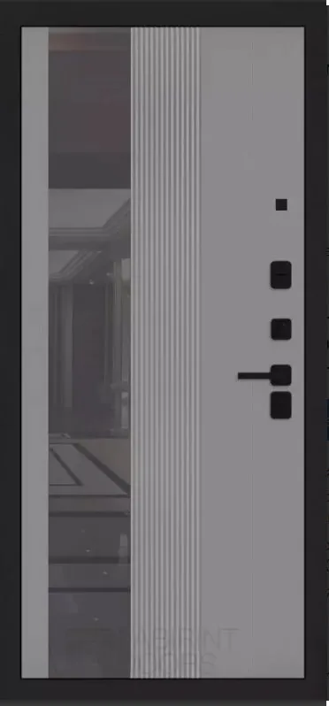 Покраска металла: Муар черный Фрезерованная МДФ панель 10 мм, цвет "Velutto Grigio" с патиной и вставкой из металла в цвет наличника (заподлицо)