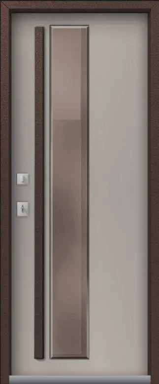 В конструкции двери Т-4 PREMIUM используется двухкамерный стеклопакет толщиной 48 мм. Стекло цвета Bronze с низкоэмиссионным энергосберегающим покрытием, сохраняет тепло внутри дома и практически исключает теплопотери. Также стоит отметить тяговую ручку. Механизм открывания, встроенный в ручку, - со